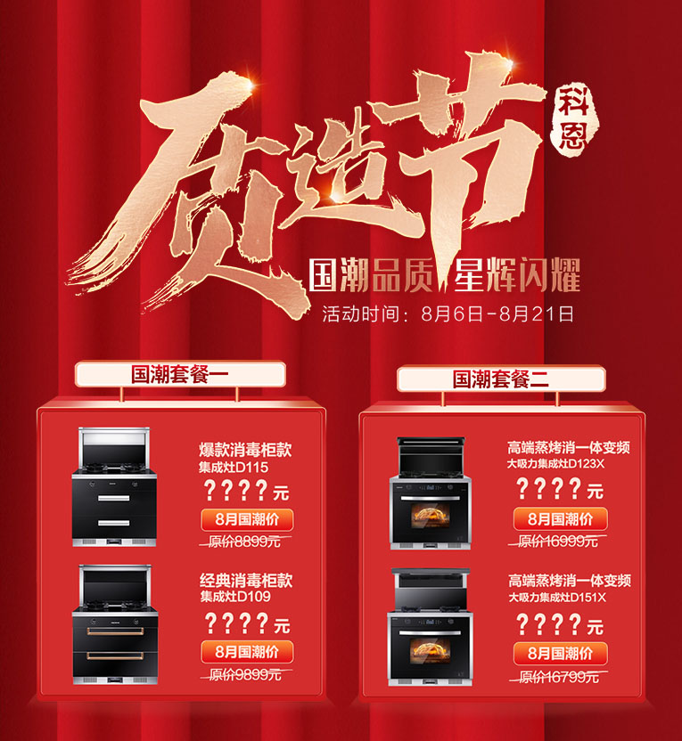 集成灶十大品牌、廚電行業(yè)十大品牌科恩八月質造節(jié)大型全國促銷活動強勢來襲,國潮品質,星輝閃耀,絕對給你想不到的洪荒之“利”!