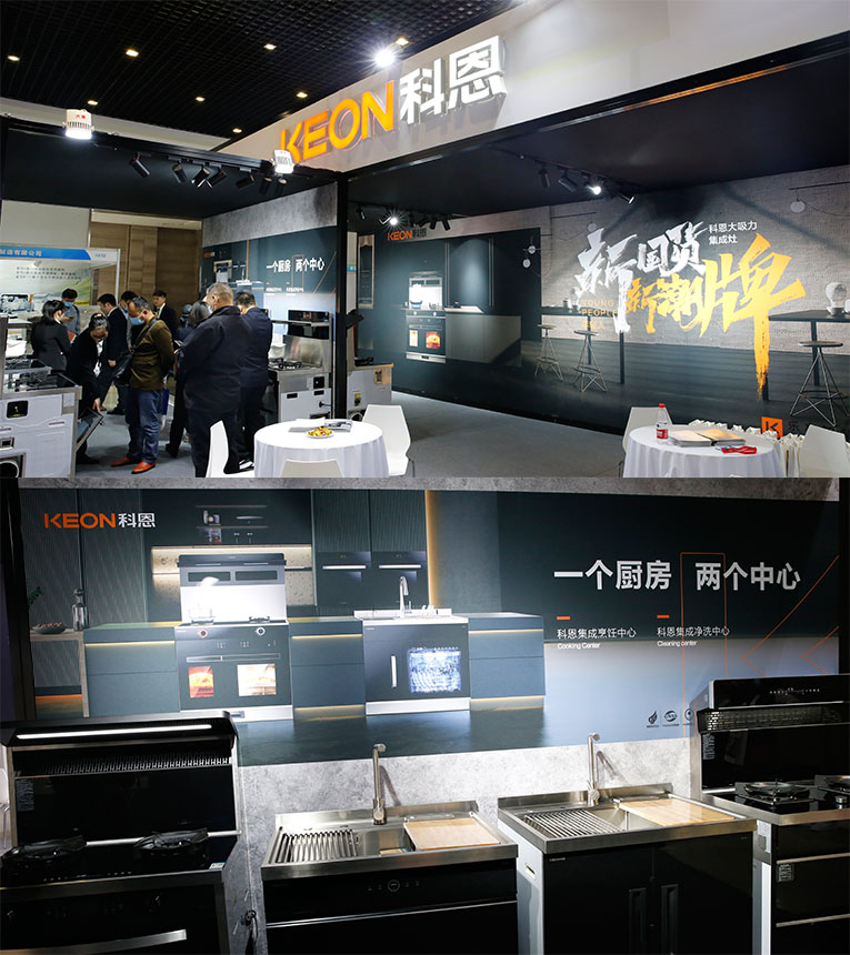 集成灶十大品牌、廚電行業(yè)十大品牌科恩集成灶半敞開式展位更顯非凡氣度,“新國貨、新潮牌”時尚氛圍更是吸睛無數(shù),通過零距離體驗產(chǎn)品,感受科恩產(chǎn)品帶來的樂享智慧廚房體驗。作為嵊州集成灶軍團主力軍,攜“一個廚房,兩個中心”集成烹飪中心S系列集成灶與集成凈洗中心X系列集成水槽等多款凝聚匠心與智能之作重磅亮相。