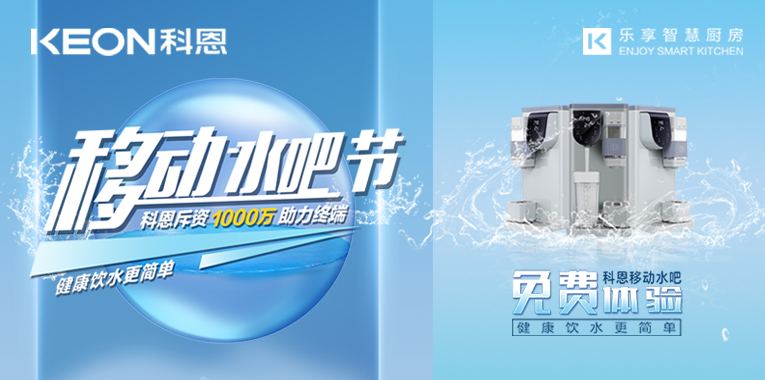 移動水吧的加持下,使得“科恩新三件”的產品戰略完美開展,廚房新國潮,科恩新三件~集成灶/集成水槽/集成式凈水器,延續“樂享智慧廚房”理念,打造更有趣、更便捷、更健康的廚房體驗,為用戶搭建真正的集成智慧廚房!贏在終端,贏在執行力,當下,科恩移動水吧節正在火熱進行中,邀請用戶進科恩全國門店,即可享受免費體驗新款移動水吧活動,精準種草,助力門店業績倍增!