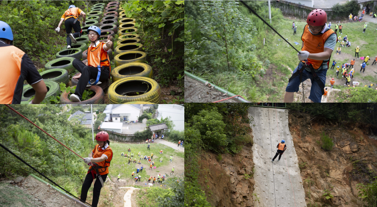 利用繩索一步一步地由巖壁頂端下降到地面,借助專業(yè)繩索器械,利用單繩技術(shù),自己給自己放繩,背朝地面,如同飛虎隊(duì)從巖頂降落到地面。巖降屬于高心理挑戰(zhàn)的玩法,體驗(yàn)與自己抗?fàn)幰约俺晒Φ臉啡ぃ瑥亩匦抡J(rèn)識(shí)自己,增強(qiáng)自信心。科恩家人們分組挑戰(zhàn)巖降,大家披甲上陣,互相鼓勵(lì),不畏艱難,就如在工作中面臨的困難一樣,披荊斬棘,毫不退縮。