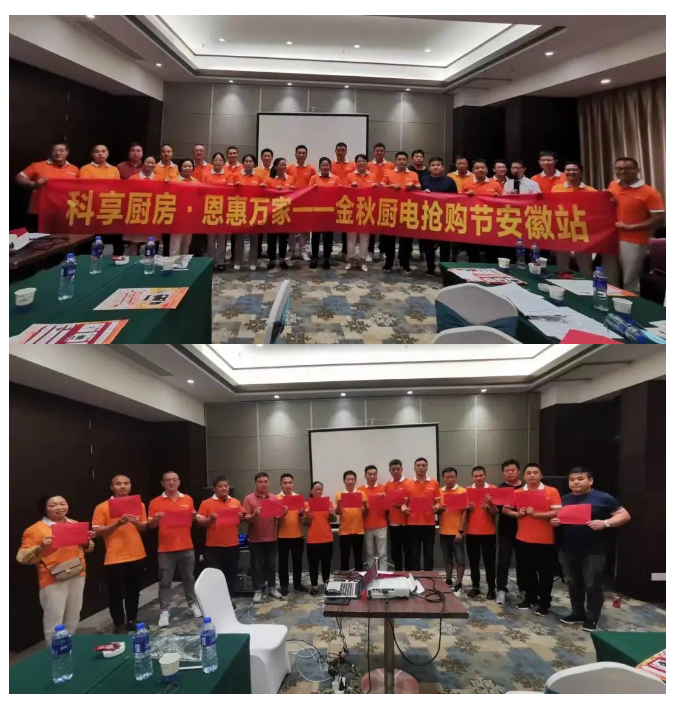 最后,萬眾期待的科享廚房·恩惠萬家——金秋廚電搶購節安徽站大促活動正式啟動,運營主管王金晶對本次活動籌備內容與作戰計劃進行了詳細部署和專場解讀,要求各位安徽區域家人們凝心聚力,在金九銀十家裝旺季順勢而為,謀勢而動,積極搶占市場份額!