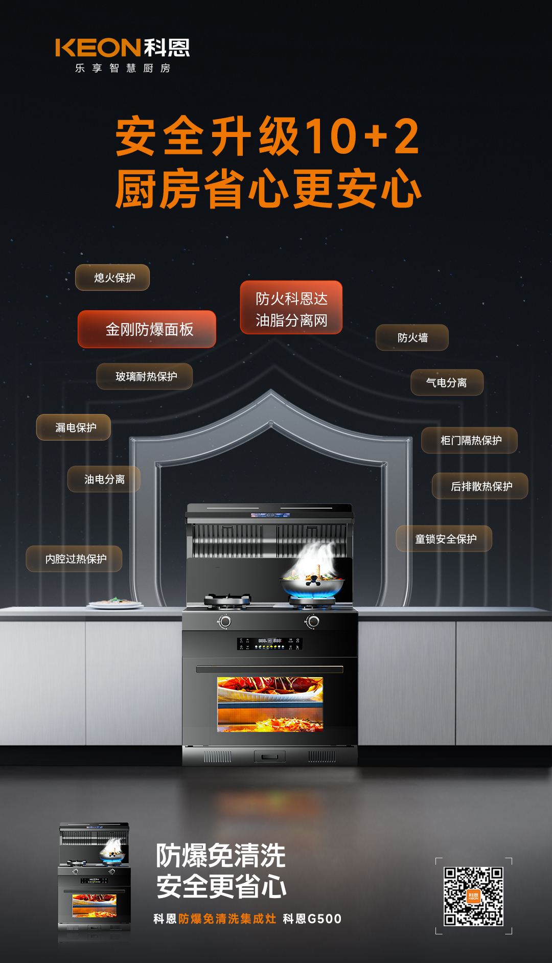 怎么樣的集成灶才能更完美匹配用戶的需求。2023年,科恩研發(fā)了G系列防爆免清洗集成灶,6K省心超體驗(yàn),完美適配消費(fèi)者需求!