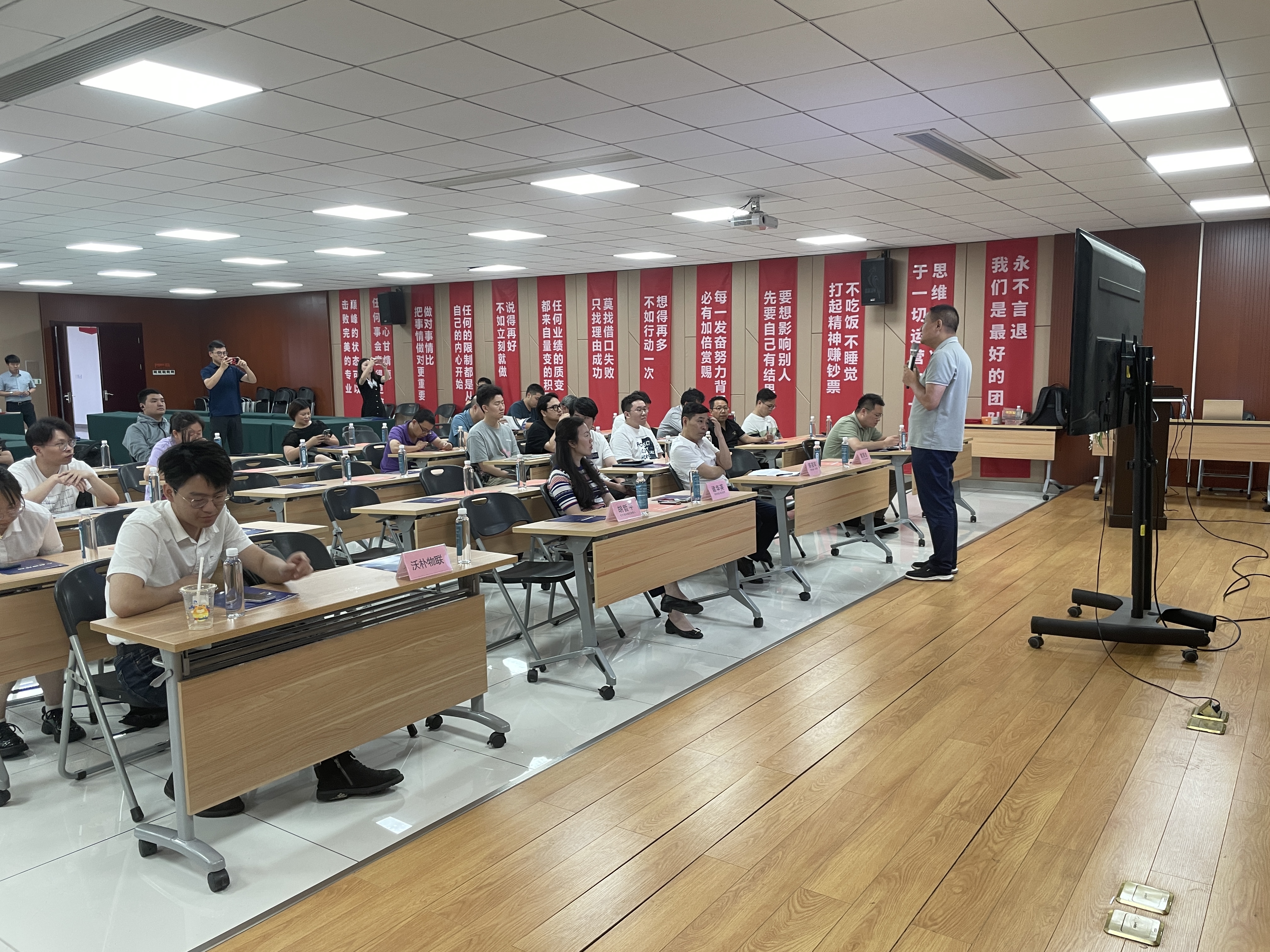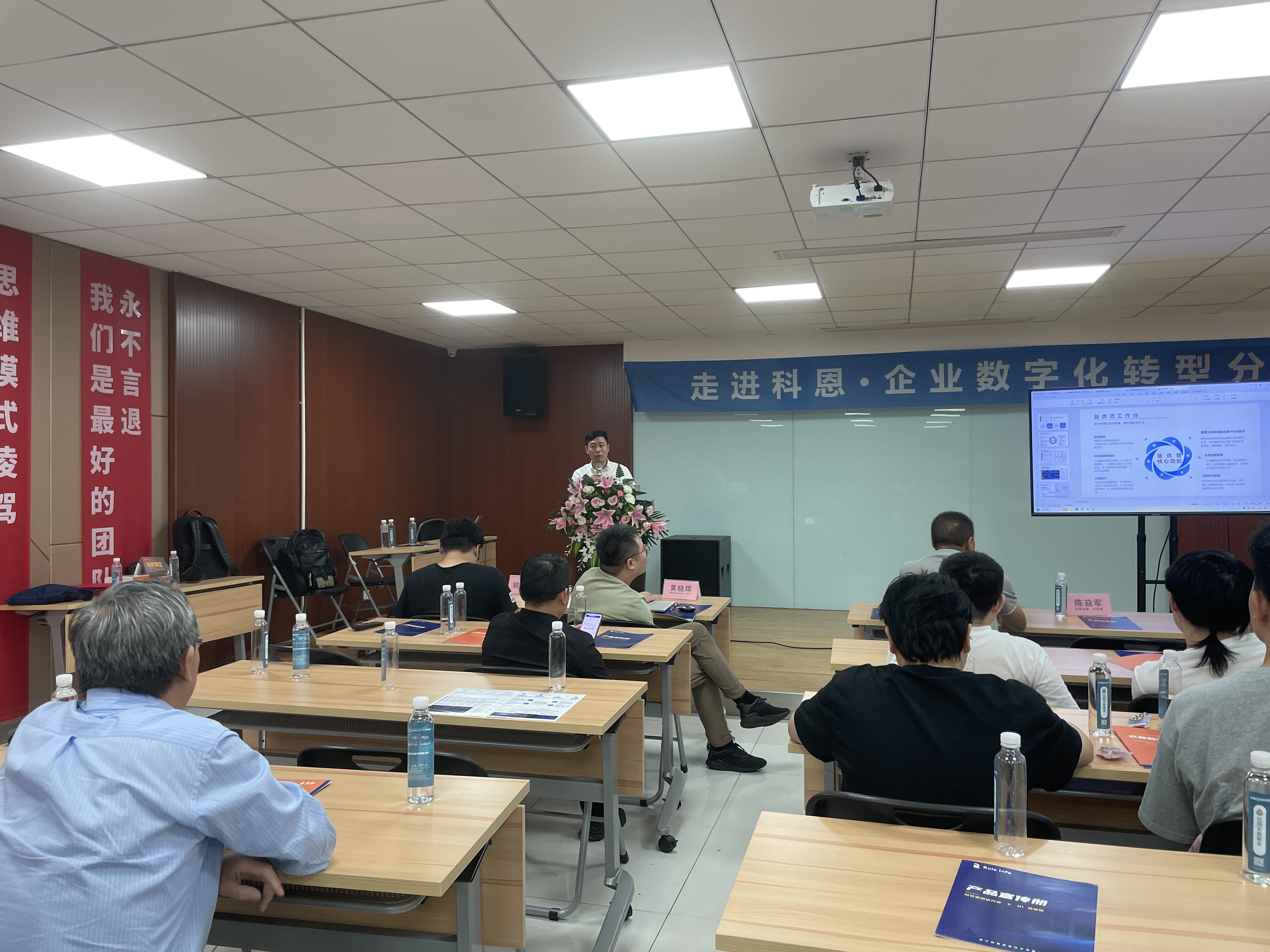 本次會議邀請到了:嵊州市數字經濟促進會副會長--黃曉輝、企業數字化升級研究專家--黃涌忠、釘釘紹興區域負責人--胡哲平、科恩電器總經理--陳益軍、銳智企業數字化方案實施專家--傅宏翔做重要分享。