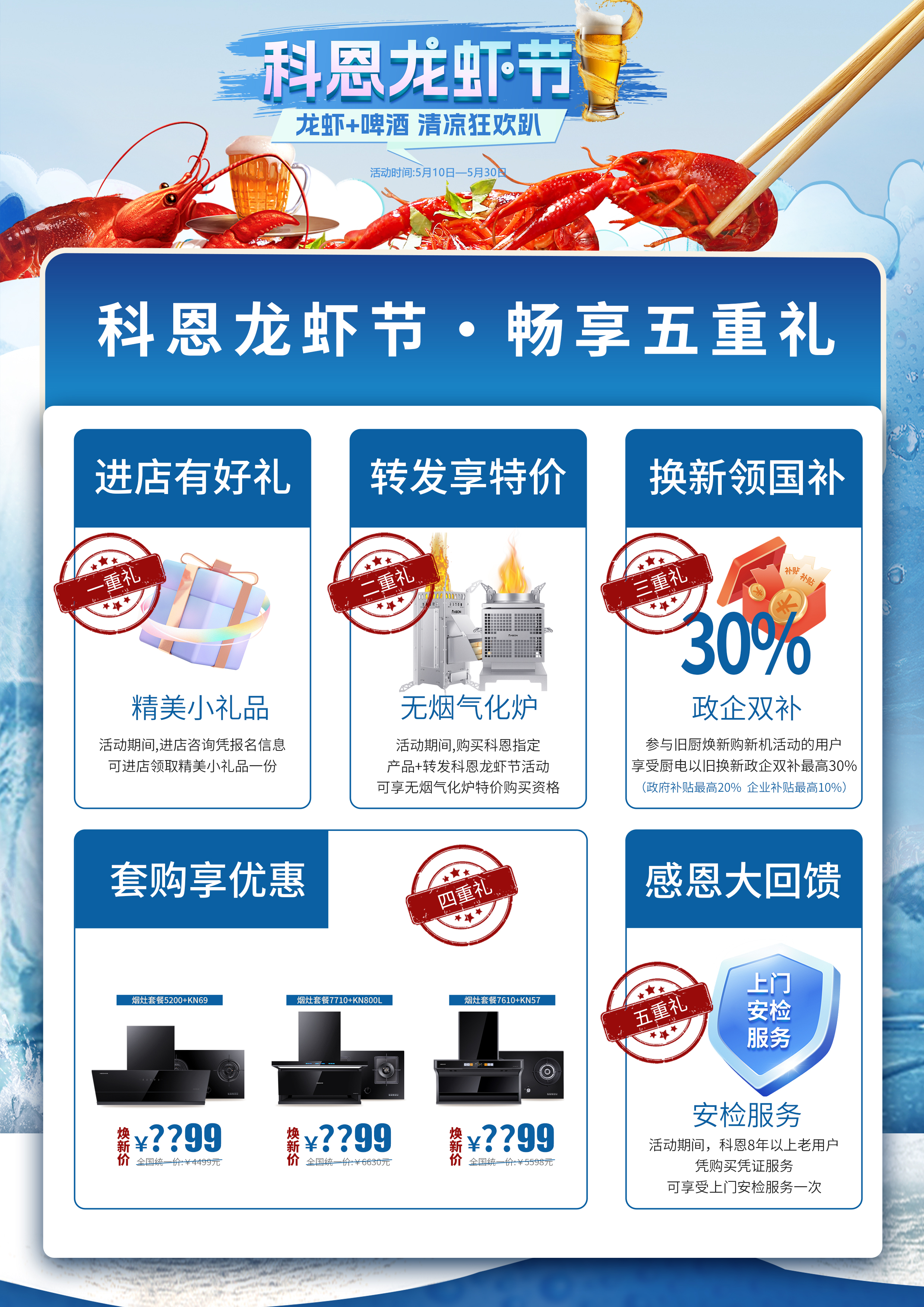 這個五月,燃情一夏,盡在科恩。科恩龍蝦節,科技賦能美食,重新定義廚房生活!即刻行動,前往當地門店體驗,解鎖屬于你的廚房煥新計劃!