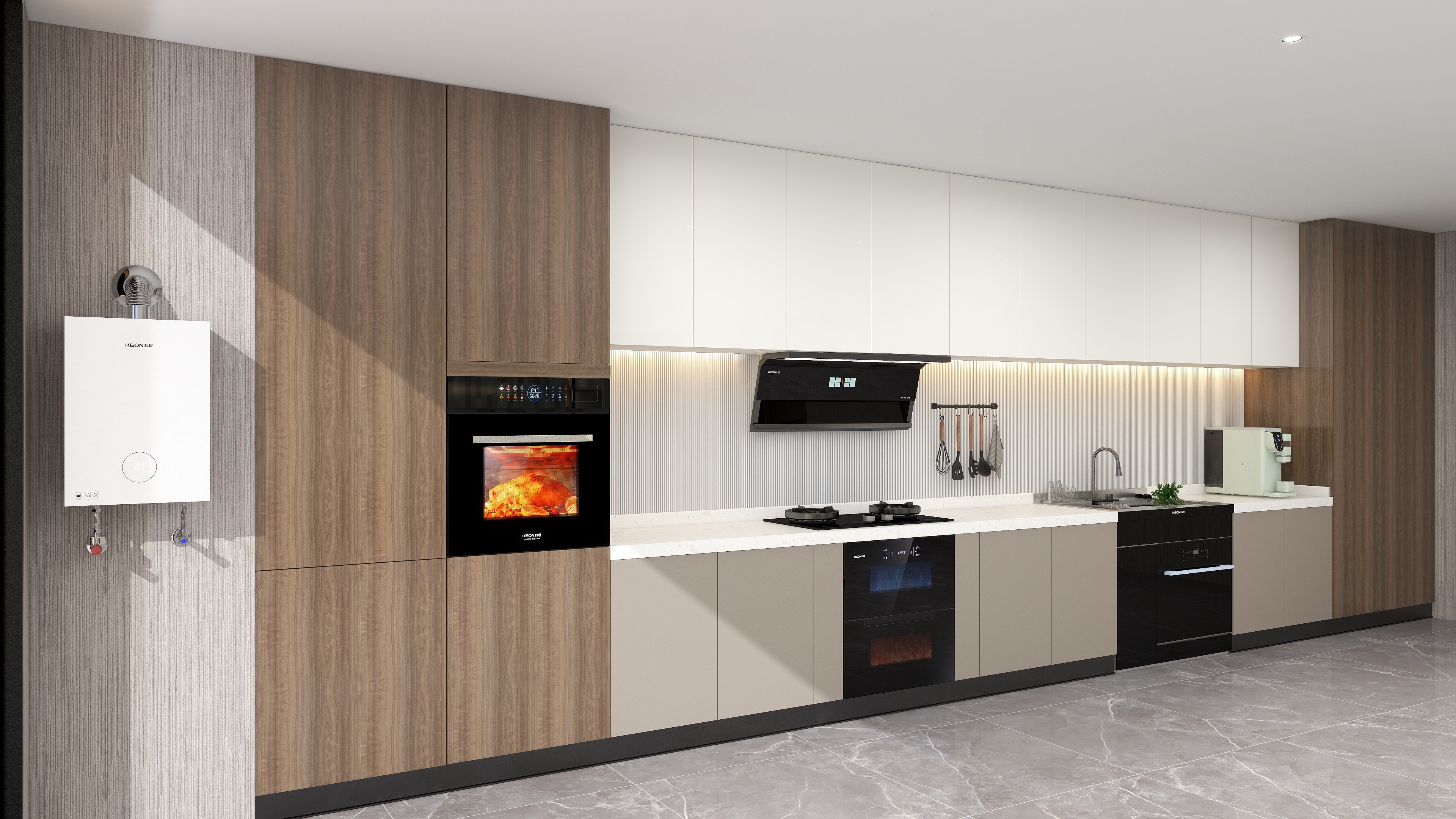 揮手智控,告別油膩。隔空揮手,啟停隨心控,三檔風(fēng)力應(yīng)對,廚藝不設(shè)限,特氟龍工藝,油污不粘附,智旋自清洗,吸力不衰減,科恩 7810 煙機(jī),潔凈更輕松。