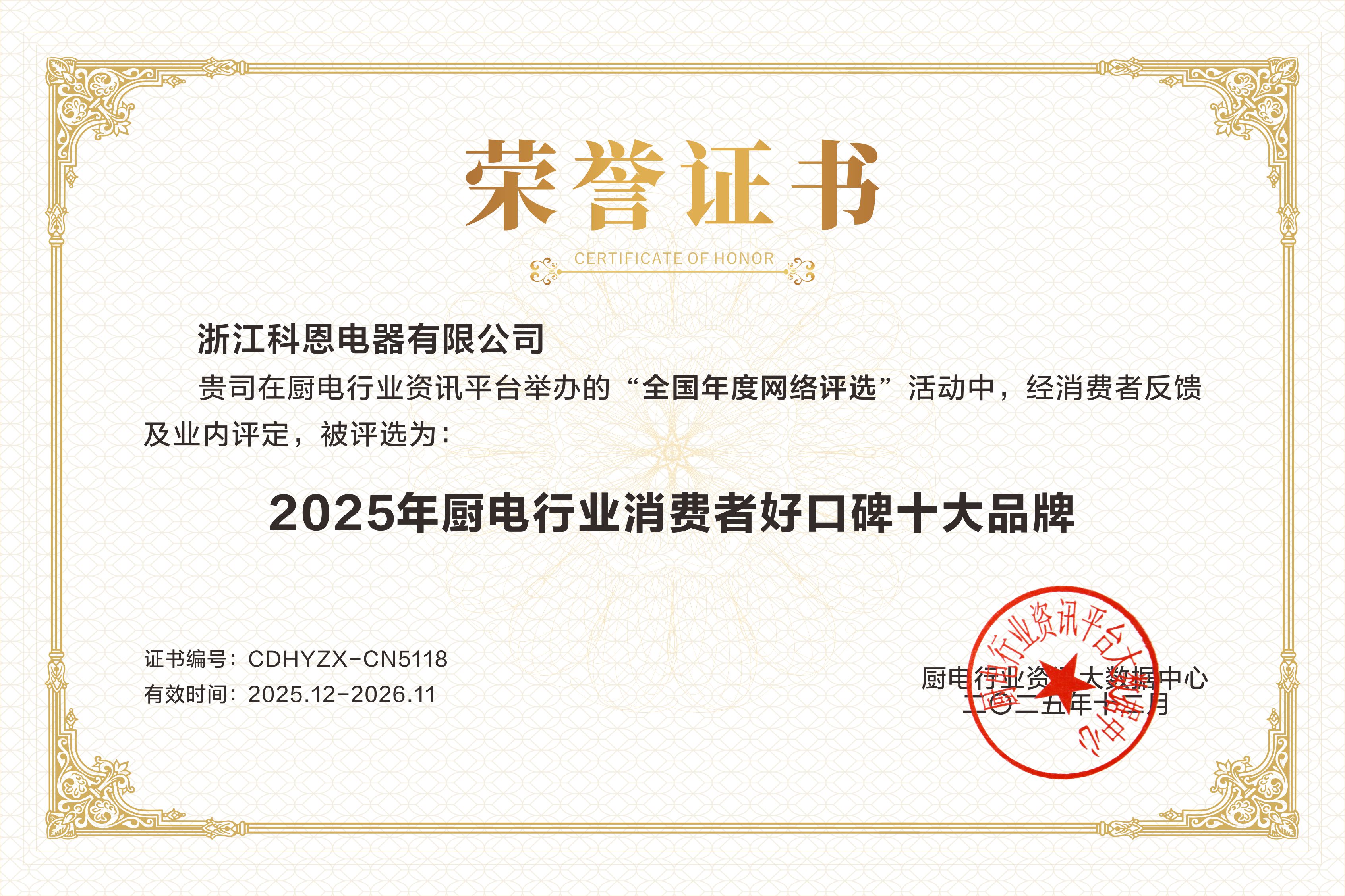 每一次獲獎(jiǎng),都是對(duì)過(guò)去的總結(jié),更是對(duì)未來(lái)的承諾。科恩電器感謝每一位用戶的信賴與選擇,感恩行業(yè)伙伴的認(rèn)可與同行。站在新的高度,科恩將承載這份榮耀與期待,繼續(xù)秉持匠心與創(chuàng)新精神,不僅致力于提升中國(guó)家庭的廚房生活品質(zhì),更愿與行業(yè)一同成長(zhǎng),共同推動(dòng)廚電產(chǎn)業(yè)邁向更高水平的發(fā)展征程。