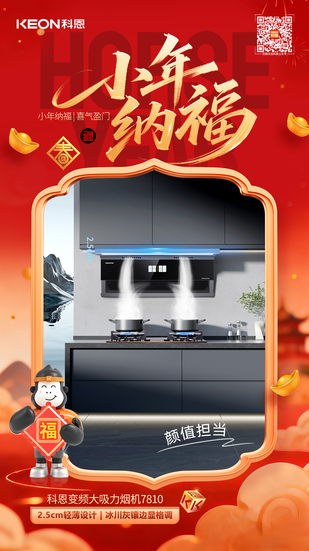 小年祭灶祈安康,科恩7810煙機以凈煙實力守護團圓之美。它讓廚房告別油煙困擾,以顏值點亮家居,用智能簡化操作,用健康貫穿始終。這個小年,讓科恩煙機陪伴你洗凈舊塵、烹煮佳肴,在清新潔凈的廚房中,迎接福氣滿盈的新春。