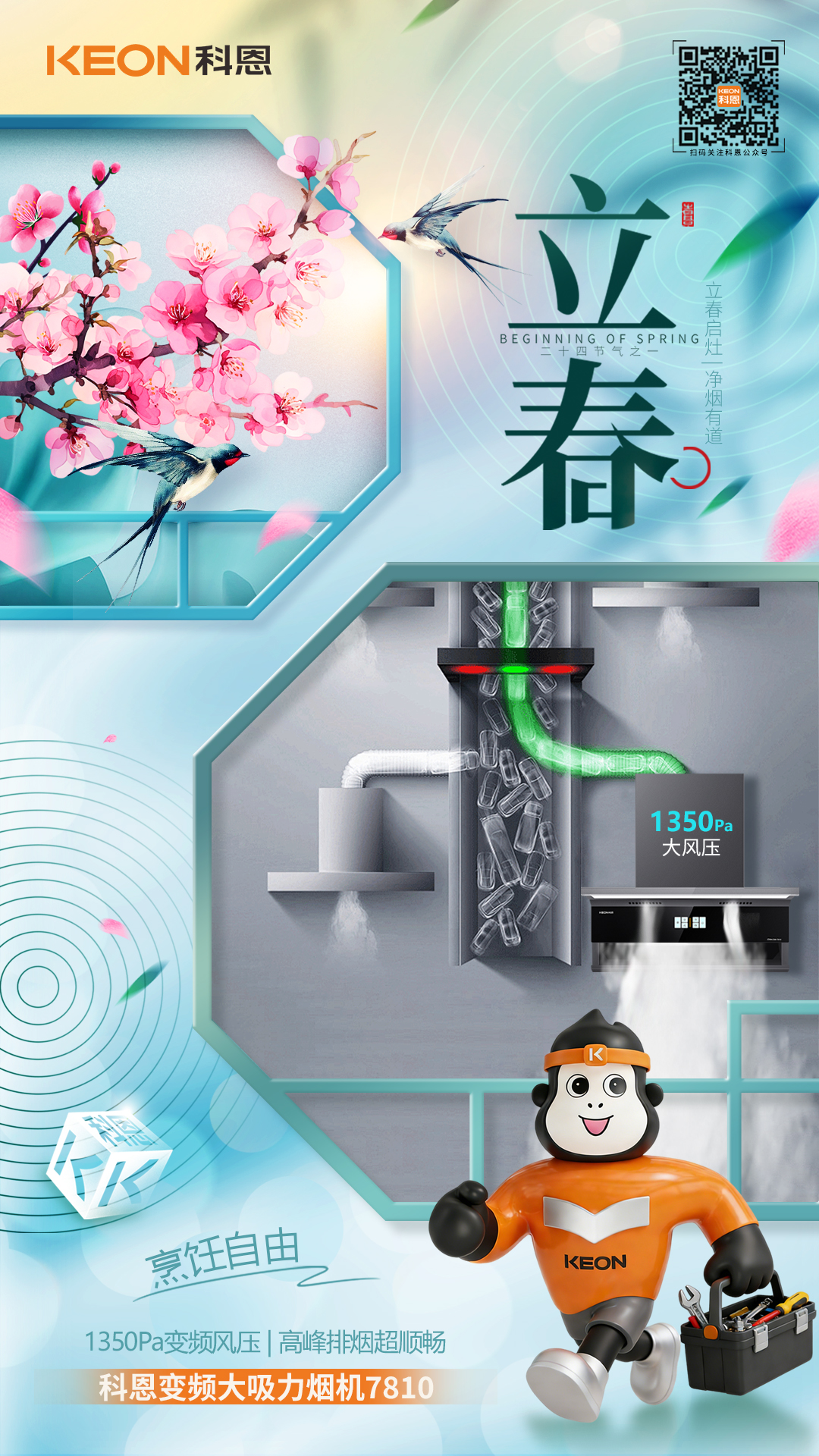 立春啟灶,凈煙有道。新綠破寒時,廚香伴清歡,科恩煙機(jī) 7810,以立春煥新之姿,重構(gòu)「無煙廚房」的烹飪美學(xué),讓每一次掌勺都成為自由呼吸的享受。