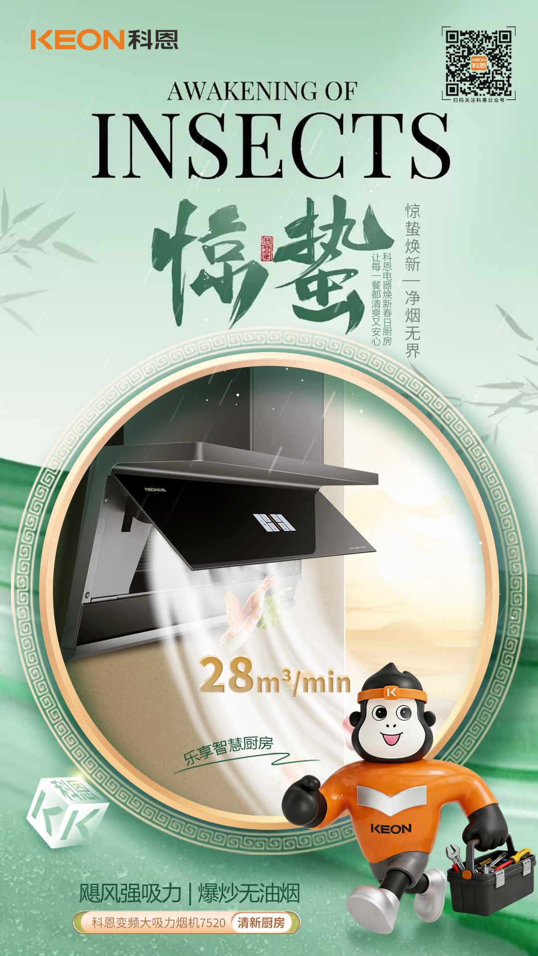 春雷啟驚蟄,煥廚正當時,科恩大吸力煙機7520,以巧裝破局,以強吸凈味,以智能省心,一灶春風,一室清新,讓廚房告別油煙困擾,讓烹飪回歸自在從容。驚蟄煥新,選科恩7520,凈享健康無煙,悅啟春日美好廚居生活!