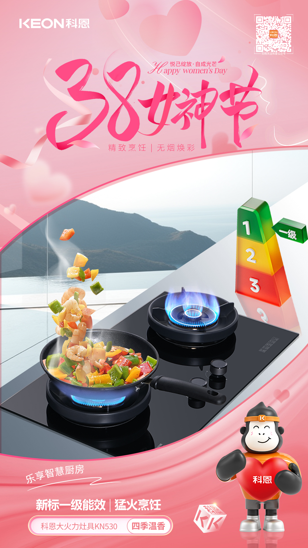 從凈煙護航到火候隨心,從恒溫守護到安全無憂,科恩以科技為翼,賦能女性品質生活。不定義她的角色,只守護她的熱愛,不辜負她的付出,只給予貼心呵護,這個婦女節,讓科恩與你一起,讓廚房成為從容主場,讓生活滿是溫柔光芒!愿每一位女性,都能在煙火氣中,活成自己喜歡的模樣,自在如風,優雅綻放。