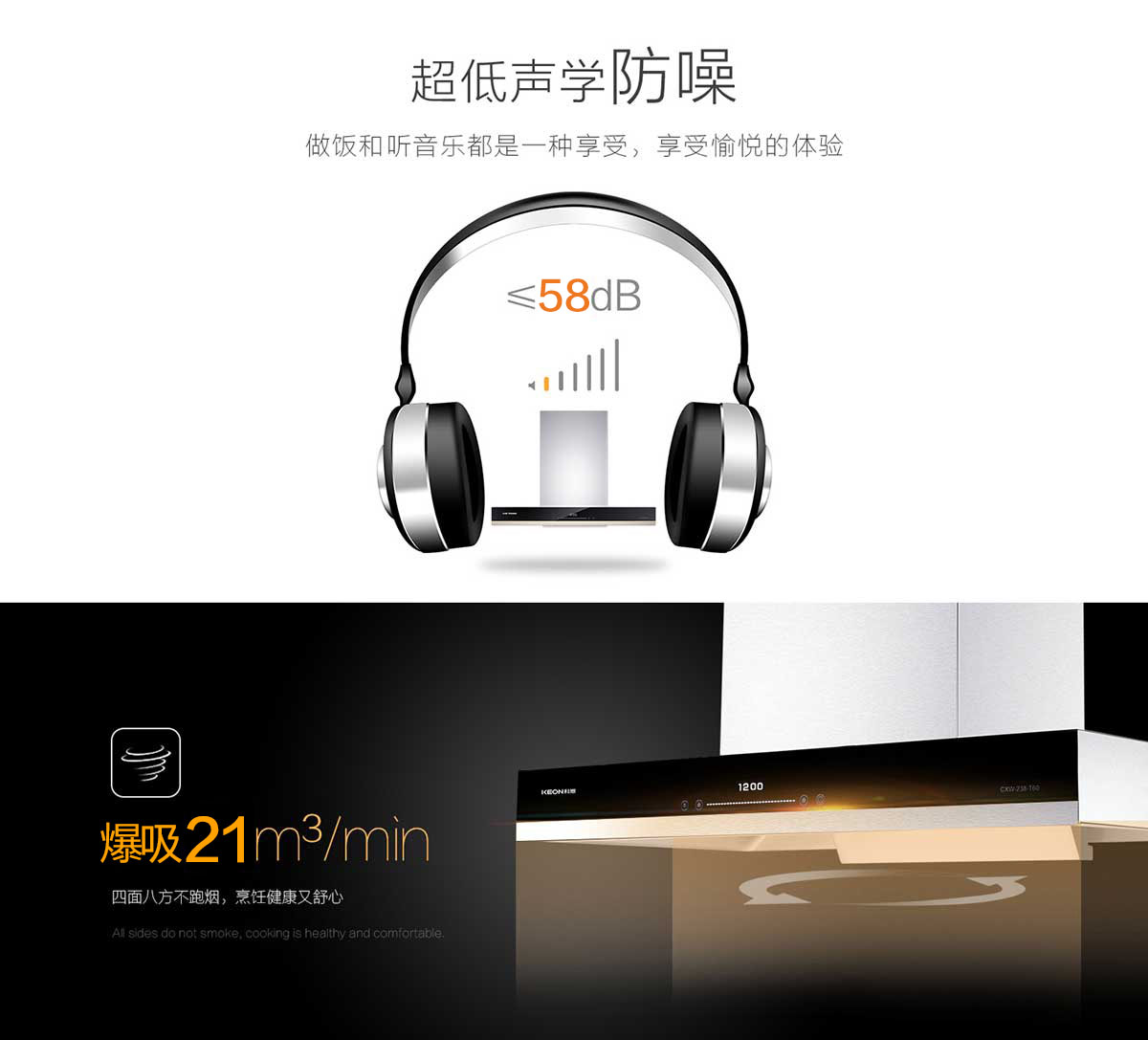 增加70mm活動(dòng)空間,秒吸油煙不碰頭。