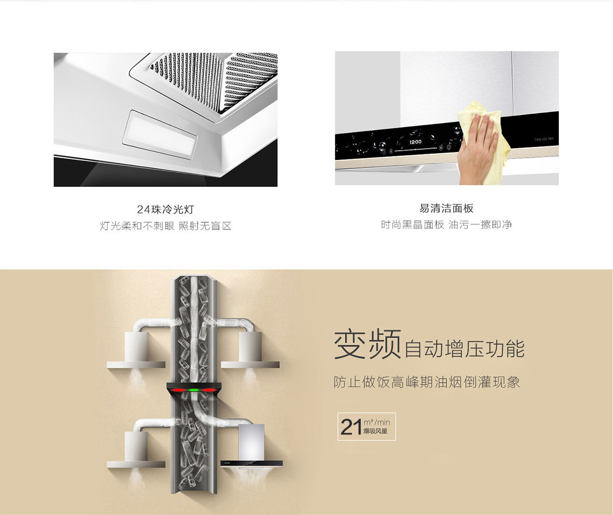 變頻自動(dòng)增壓功能,防止做飯高峰期油煙倒灌現(xiàn)象。