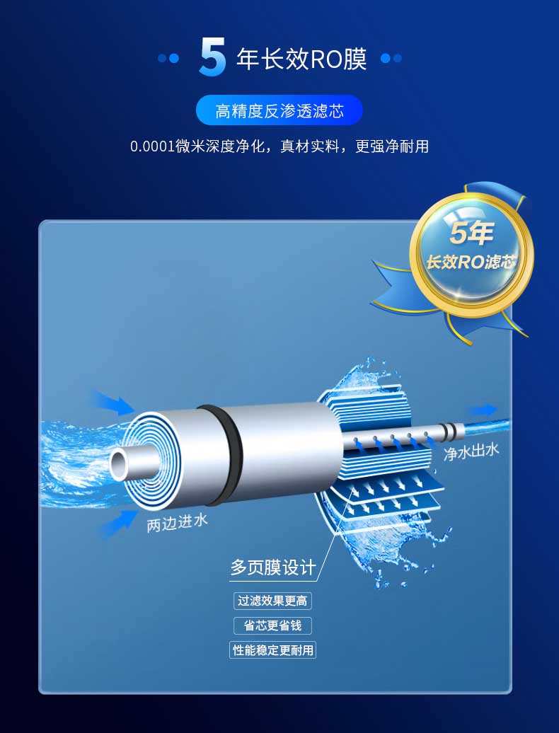 5年長效RO膜,真材實料更強凈耐用