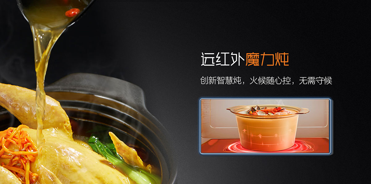 - 易潔微晶玻璃加熱盤,創新遠紅外魔力燉,火候隨心控,無需守候