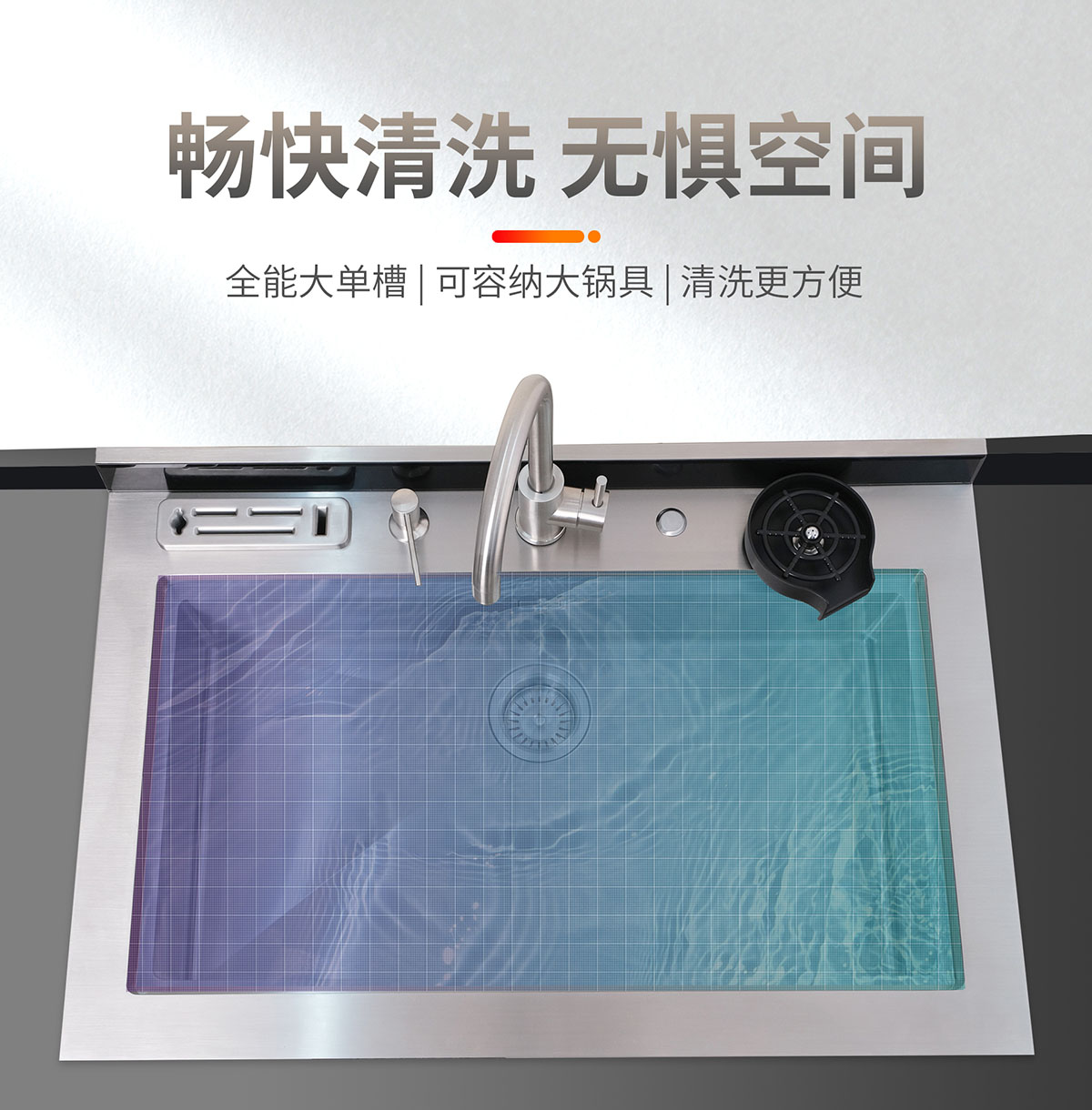 全能大單槽,可容納大鍋具,清洗更方便