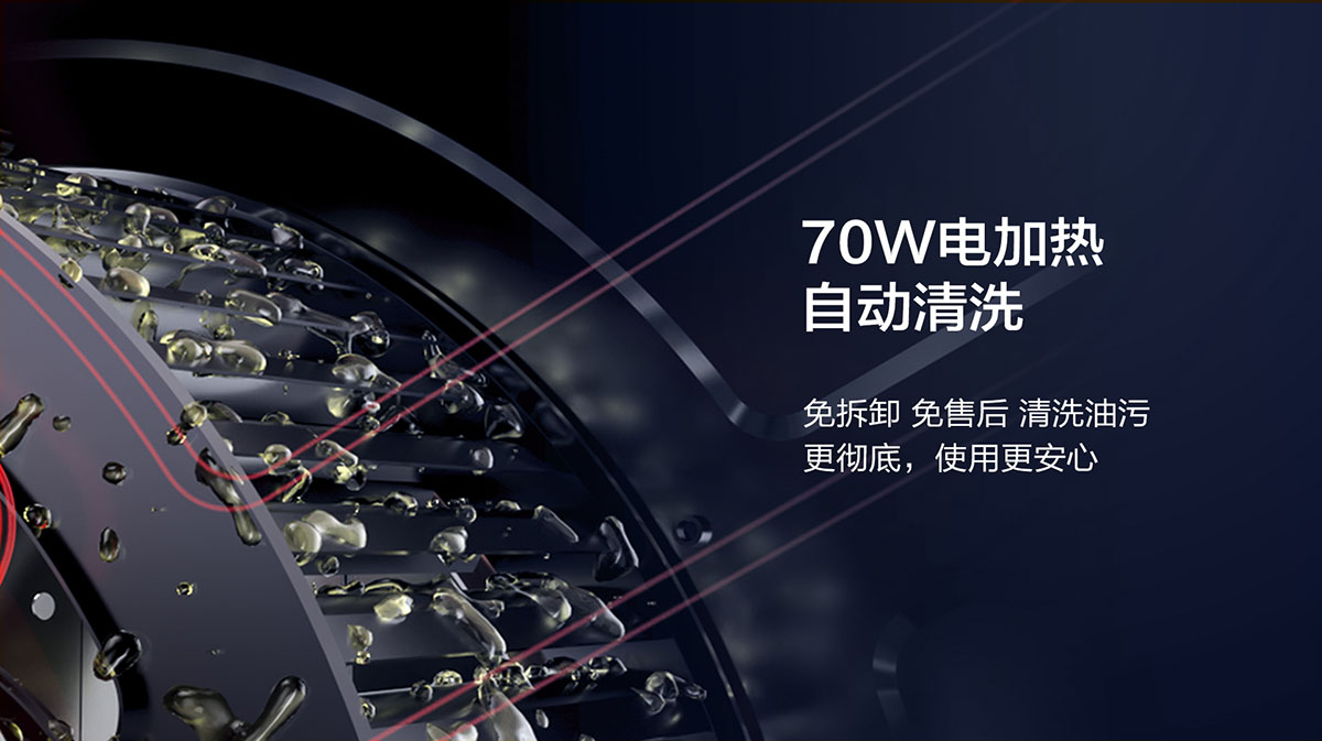 一鍵電熱自清洗,解放雙手,還原煙機澎湃動力,歷久彌新