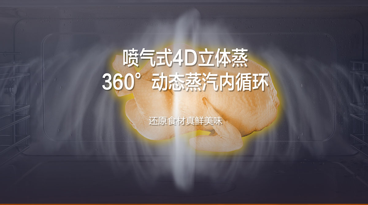 噴氣式4D立體蒸,360°動態蒸汽內循環,還原食材真鮮美味