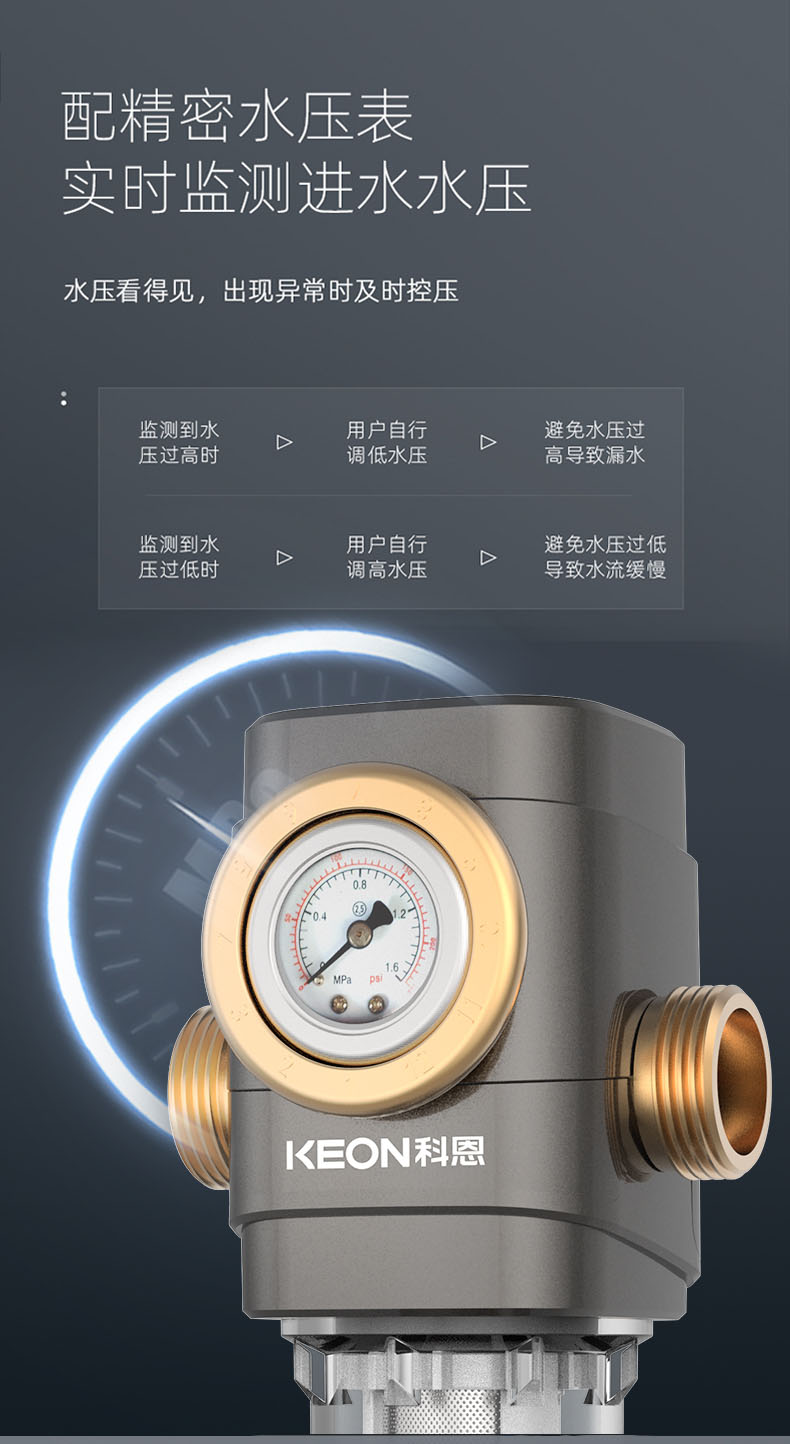 - 配精密水壓表,實時檢測進水水壓