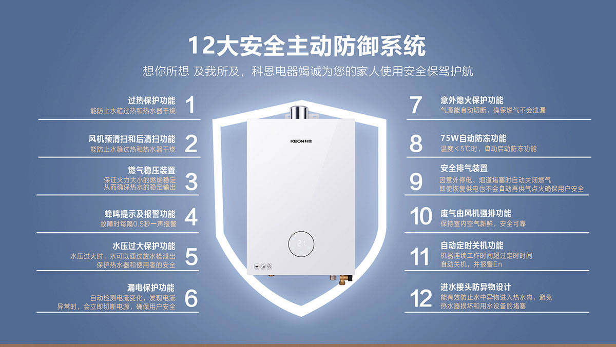 - ⻛機預清掃和后清掃功能,避免點⽕時出現爆燃及降低停⽔溫升
