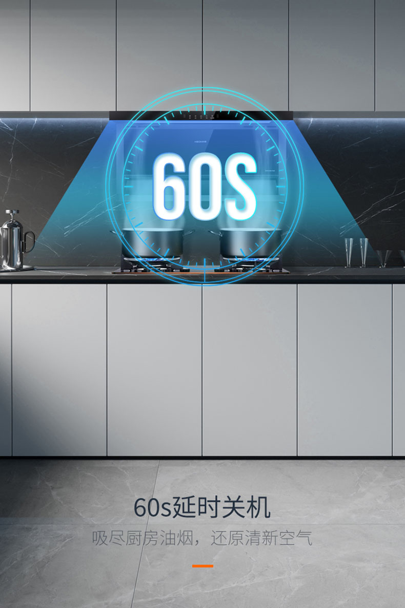 60s延時關(guān)機(jī)吸盡剩余油煙,吸盡廚房雜味,還原清新空氣