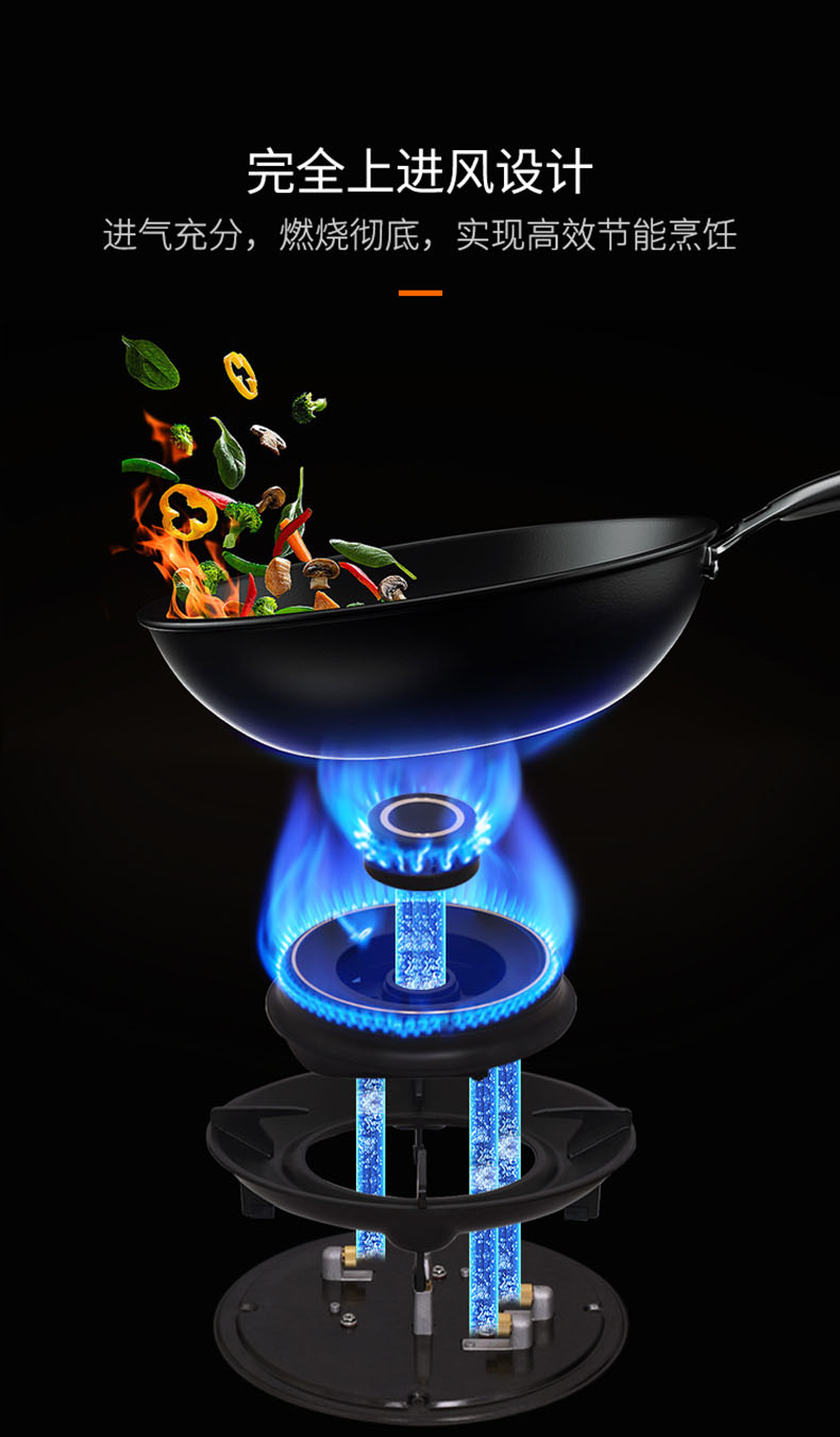 - 全上進風設計,補氧充分,燃燒徹底,實現高效節能烹飪