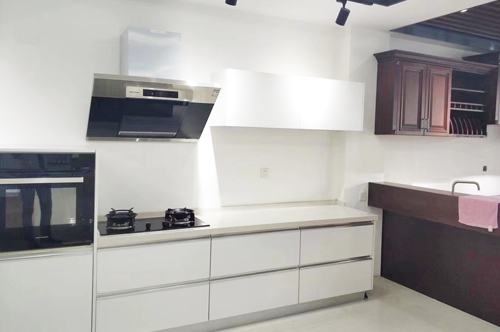 科恩廣西經(jīng)銷商提供的9011煙機和蒸箱廚房實景