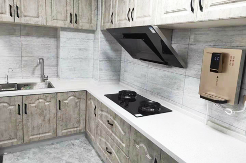 科恩廣西經銷商提供的煙機+燃氣灶消毒柜集成灶廚房實景